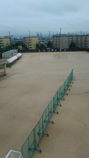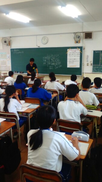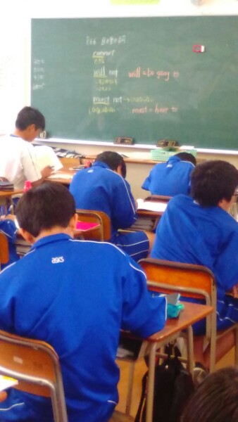 残念ながら雨で体育大会は延期になりました。現在の運動場の状況です。生徒は切り替えて授業を受けています。1年生の数学、2年生の英語の様子です。