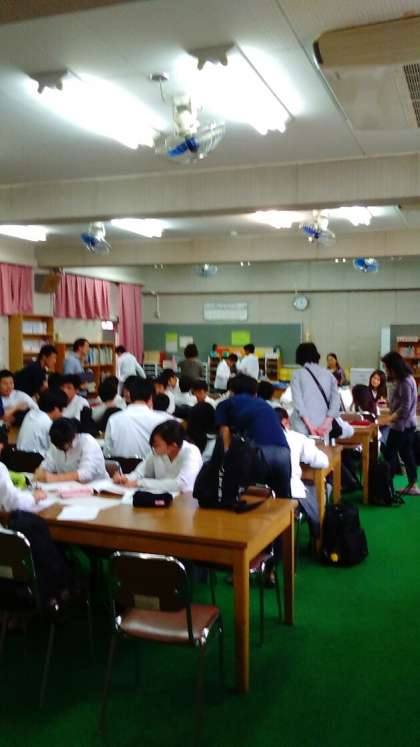 3年生は今日から、1.2年生は明日よりテストです。図書室で学習をしています。
