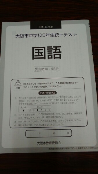 3年生は統一テスト、1・2年生は中間テストを受けています。