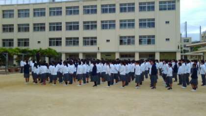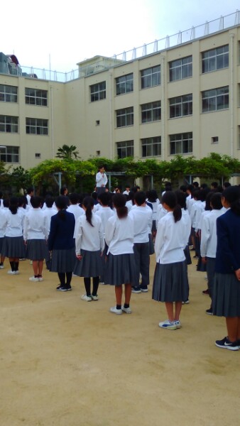 全校集会で文化祭実行委員会から文化祭のスローガンが発表されました。スローガンは「パワー オブ スマイル 笑顔満載」です。