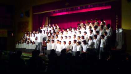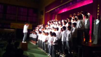 3年全体合唱は「HEIWAの鐘」を歌っています。修学旅行で学んだ平和への思いを込めて、男女のハーモニーが美しく合わさり、感動の歌声が響きわたりました。
