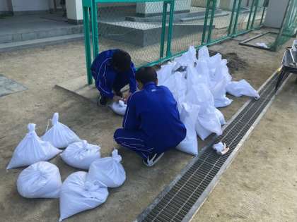 土嚢を作っています。