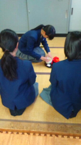 放課後、カルチャー部がお茶会を開いています。事前に申し込んだ生徒がお茶とお菓子のおもてなしを受けています。