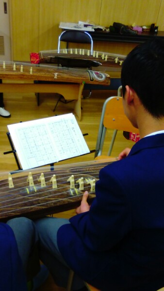 3年1組の「お箏」の体験授業の様子です。「お箏」を弾くのも3年目になり、慣れてきました。
