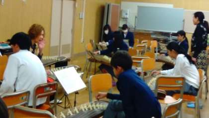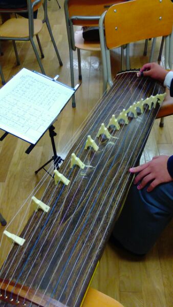 音楽の時間の「お箏」の授業です。3年4組と3組の様子です。
