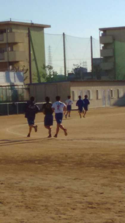 グランドでは、陸上部が駅伝大会に向けて練習をしています。