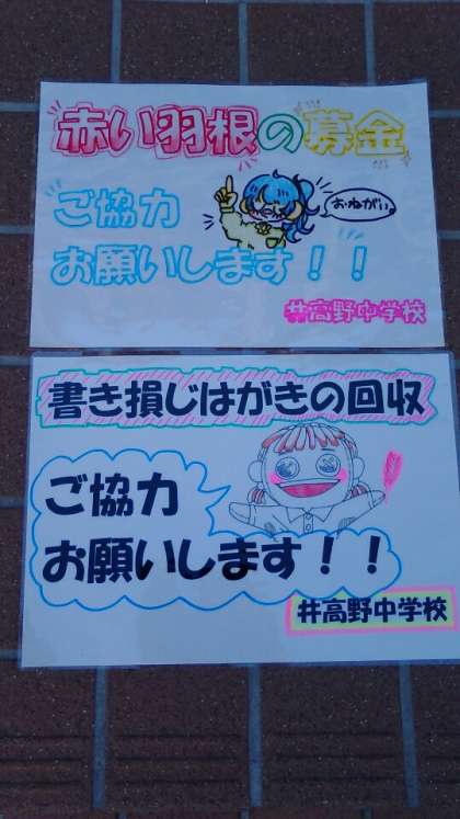 本日集まった募金は、4615円、書き損じハガキは19枚です。