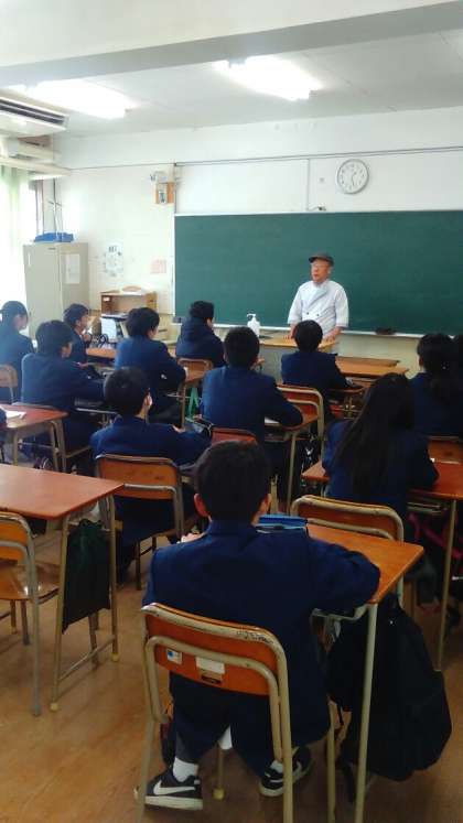 洋菓子職人の中村さん(アンジェナカムラ)、幼稚園の水上園長先生(こみち幼稚園)、旅行会社添乗員 隅谷さん(HIS)に来ていただき、クラスごとにお話を聞きました。