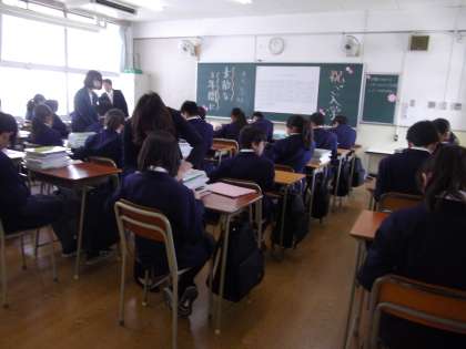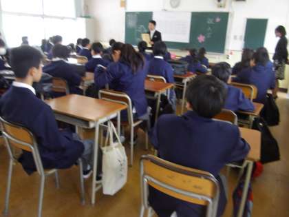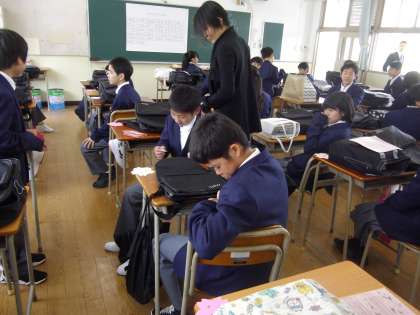入学式終了後、教科書を受け取り、教室での初学活です。