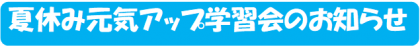 次回の夏休み元気アップ学習会は、7月24日(木)です。「家ではなかなか集中できないな。」「気持ちを切り替えて頑張りたいな。」という皆さんは、ぜひ積極的にご参加ください。