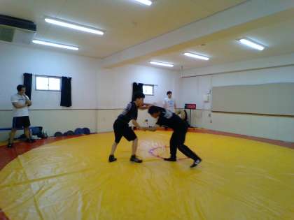 写真は、女子ソフトテニス部、卓球部、レスリング部の活動の様子です。