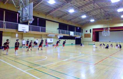 本日午後には、体育館で男子バスケットボール部と女子バスケットボール部が活動していました。