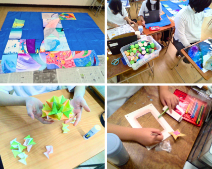 美術部では、文化祭で展示する作品制作に励んでいました。一つの絵を数名の部員でパーツごとに分けて描く合同作品にも挑戦していました。どんな絵が仕上がるのか楽しみですね!