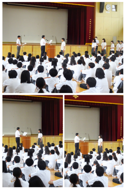 本日より2学期が始まりました。始業式に先駆け、夏休み中に出場した大会やコンクールの表彰が行われました。