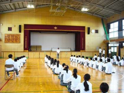 私がこの夏、注目したのは阪神タイガースが記録的な強さをみせ、優勝しそうだということです。今年の阪神タイガースが、なぜこんなに強いのか。ニュースでもよく取り上げられている理由の一つが、ここ数年ドラフト1位で選ばれた有望な新人選手が活躍しているということです。しかし、私が注目したのは、ドラフト1位の選手と同じくらい、ドラフト下位の選手も活躍しているということです。チームとして、もともと期待値の高い1位、2位の人のみが活躍しても勝つことはできません。チームに所属しているみんなの力が必要です。みなさんもこの先、チャレンジテストや合唱コンクール、文化祭や体育大会など団体で取り組む活動がたくさんあります。不得意な人もいると思いますが、一生懸命になることが大切です。チームの全員が、何らかの形で輝いていることで、周りの人を感動させることができます。何年後かに、今の自分を振り返り、よかったなと思えるように取り組んでください。