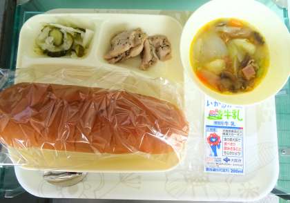本日の給食はパン食です。