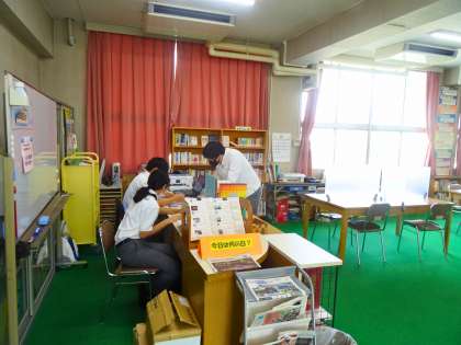 図書室では、令和7年度前期図書委員の読書推進活動「図書室限定!!おいでやスタンプキャンペーン」を実施中です。本日の開放には、3年生が当番に来てくれていました。2・3年生を中心に多くの生徒が訪れ、1枚目のスタンプカードを達成する生徒がたくさんいました。