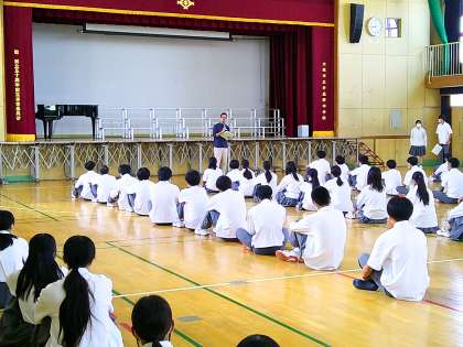 今日、各クラスそれぞれに、合唱コンクール直前の練習が音楽室であります。音楽室は体育館と違い、よく声が響くので、歌がほぼ仕上がっている今のみなさんの歌声は、非常に美しく響きます。この歌声は、担任の先生だけが聞ける特別な歌声です。今日の練習では、ぜひ担任の先生を泣かせてください。また、同じように体育館で声を響かせるには、体育館の端に跳ね返り、みなさん自身に大きく聴こえてくるような声でないと響きません。一人一人が少しずつ頑張れば、何倍もの力になります。自分の今の気持ちをのせ、力を出し切ってください。身だしなみも〇、歌声も〇の合唱コンクールにしましょう。