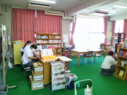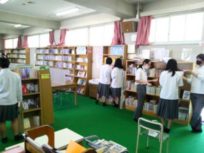 図書室では、令和7年度前期図書委員の読書推進活動「図書室限定!!おいでやスタンプキャンペーン」を実施中です。本日の開放には、2年生が当番に来てくれていました。