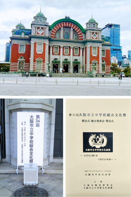 10月18日(土)・19日(日)に大阪市中央公会堂にて「第34回大阪市中学校総合文化祭」が開催されました。本校からも、美術部と茶道部、前期図書委員会が参加しました。