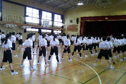 本日より、体育大会の学年練習が始まりました。4時間目に3年生、5時間目に1年生、6時間目に2年生が体育館で練習を行いました。学年練習初日の本日は、体操隊形の確認と、行進や合同体操の練習をしました。