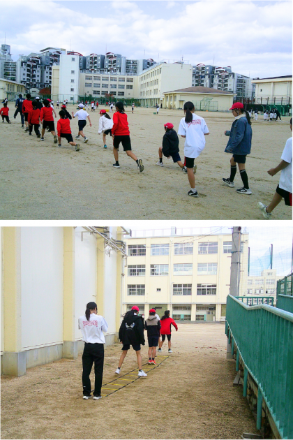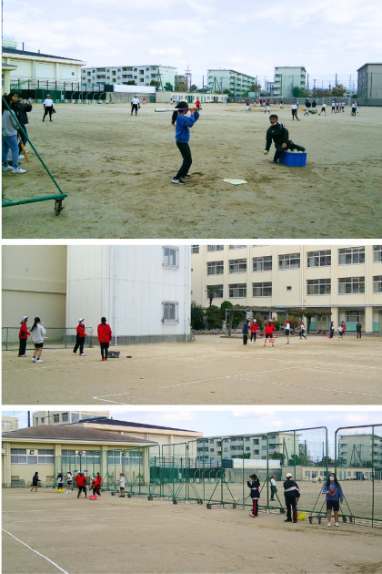 女子ソフトボール部、女子ソフトテニス部、陸上部、水泳部の体験の様子です。