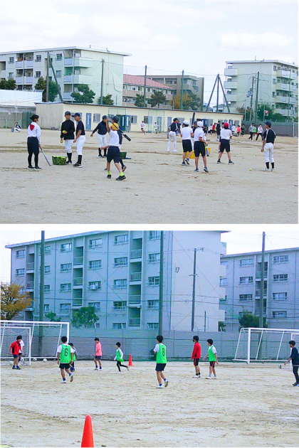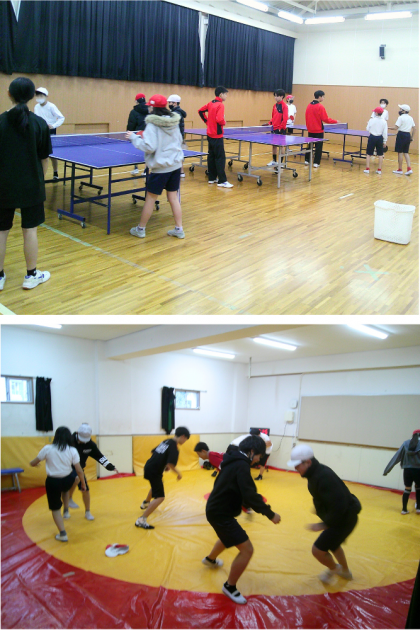 野球部、サッカー部、卓球部、レスリング部の体験の様子です。
