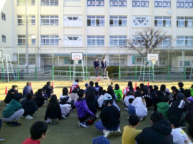 本日、本校の生徒会生徒2名が、東井高野小学校の全校集会にお邪魔し、1月27日(火)から始まる『グッとモーニングキャンペーン』の活動内容の説明をさせていただきました。『グッとモーニングキャンペーン』では、井高野中学校、井高野小学校、東井高野小学校、井高野駅前の4か所で、あいさつ運動を行いながら、書き損じはがきの回収や『服のチカラプロジェクト』の子ども服の回収、赤い羽根募金などを実施します。ご理解ご協力を、何卒よろしくお願い申しあげます。