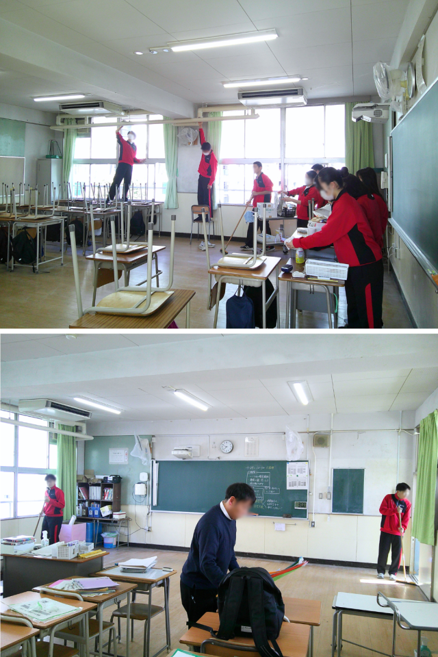 本日は3年生の公立一般選抜学力検査でした。全力で頑張っている仲間を応援しつつ、本日受験のない生徒は、午前中に登校し学年フロアや階段などの大掃除をしてくれました。掲示していた作品やポスターをはがし、棚の上や窓も丁寧に拭き掃除をしてくれていました。おかげで、どこもかしこも大変きれいになりました。