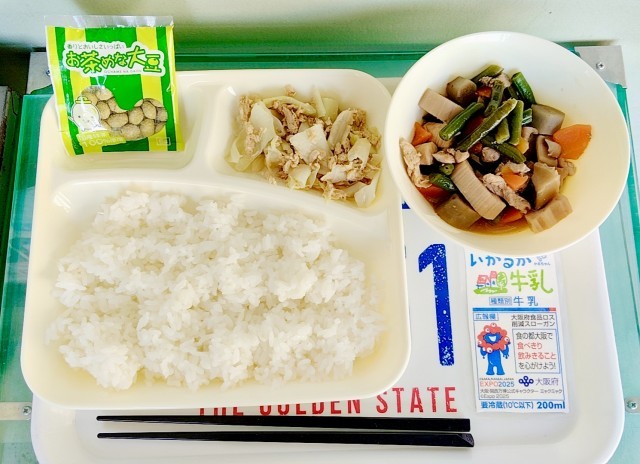 本日の給食はパン食です。3年生は学年末テストで3時間目終了後に下校したため、1・2年生のみの給食です。