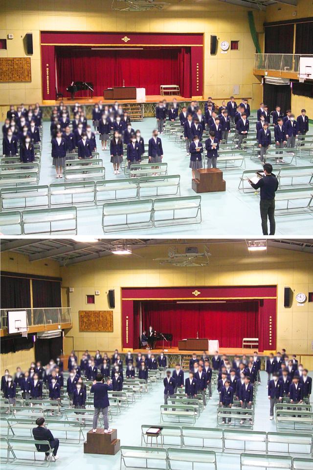 ※写真は1年2組と、2年2組の授業の様子です。