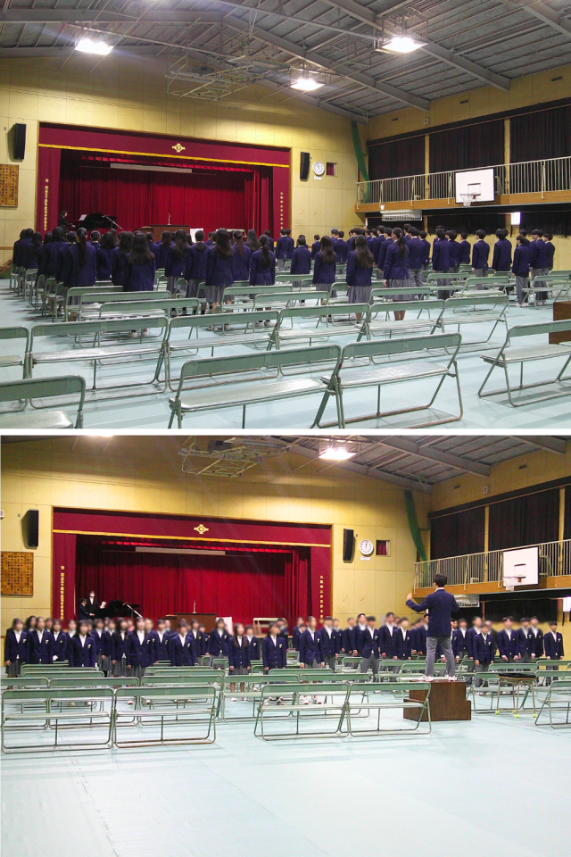 また、みなさんが使っていた教室や学校のものは、『来た時よりも美しく』の気持ちで、丁寧に後輩に引き継いでいけるようにしましょう。