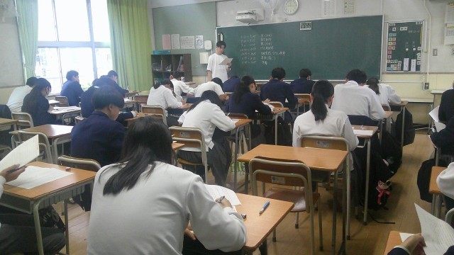 今日は3年生は全国学力・学習状況調査があります。1限国語、2限数学、3限英語(聞く)、4限英語(読む・書く)となっています。3年生は1年間、多くのテストを受けることになりますので、がんばっていきましょう。