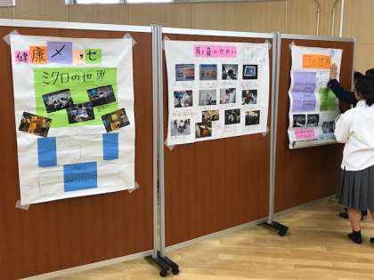 写真下 3回学習室です。ラグビーについての報告書の展示です。 -