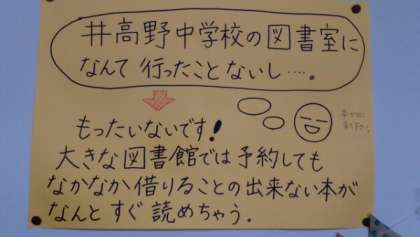 図書委員会の委員の人が、開館案内を作ってくれています。図書室に行ってみましょう。新たな発見があるかもしれません。
