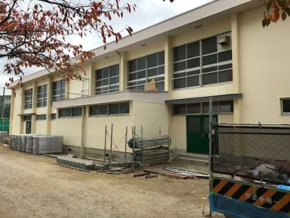 夏に始まったトイレの改修と体育館の塗装工事が大詰めに入ってます。