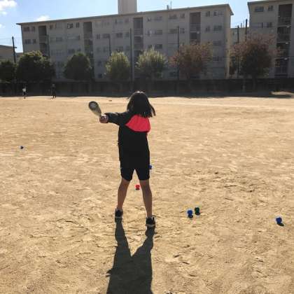ソフトテニスのボールのバウンドは微妙なのでけっこう手こずっていましたが、楽しそうでした。 -