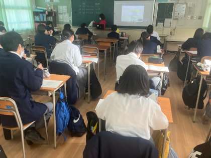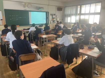 写真下)予鈴が鳴って用紙配布前の2年3組