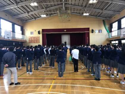 校長先生からは2学期の行事などの振り返りの話と、フィギュアスケートの紀平選手や野球選手のイチロー選手の例を挙げ、「決意すること」の大事さの話がありました。