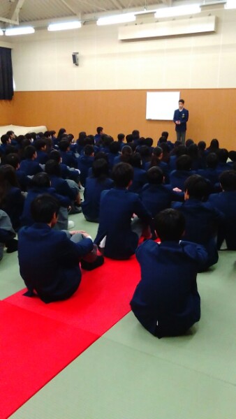養護教諭の柳井先生から、これまでの健康診断で所見があった生徒は、冬休みに病院で受診することやインフルエンザの予防の話がありました。