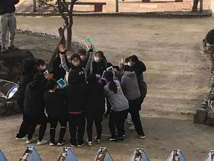午前中の学年集会は寒かったのですが、午後の運動場は晴天で暖かかったです。