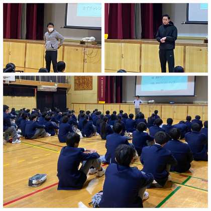 最後に、冬休みの過ごし方についてお話しがありました。冬休み中も「当たり前」を大切にし、身だしなみを整え、部活動等では先輩としての自覚を持ち、チャレンジテストに向け勉強も頑張りましょう。 -