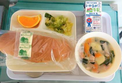 本日1・2年生は学年末テストのため、3年生のみ給食を実施しました。