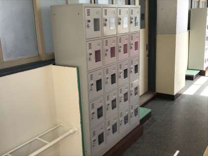 ということで、各教室の下駄箱を撤去し、そこに個人用ダイヤルロッカーを置くことにしました。
