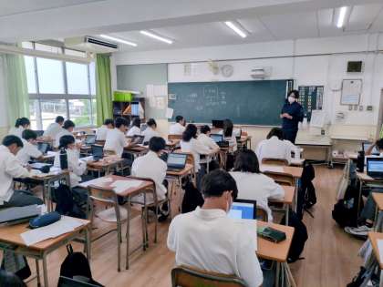 本日6時間目に、2年生を対象に、一人一台端末を使って「令和7年度全国運動・運動能力、運動習慣等調査」と、本校が昨年度より大阪市教育委員会の「学習動画コンテンツ配信モデル事業」のモデル校として導入しているスタディサプリのアンケート調査を実施しました。