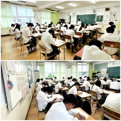 みんな、1学期の締めくくりとなるテストを、真剣に受けています。