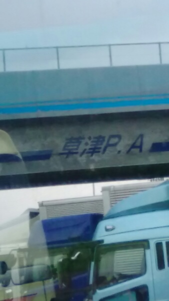 草津PAで最後のトイレ休憩です。予定より少し遅れて出発しました。学校到着予定は、16時35分でしたが、それより少し遅れそうです。あるバスは「ライオンキング」を見ています。
