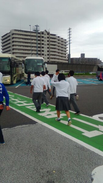 ほぼ予定通り学校へ到着しました。疲れていますが、すぐに体育館へ行き解散式です。