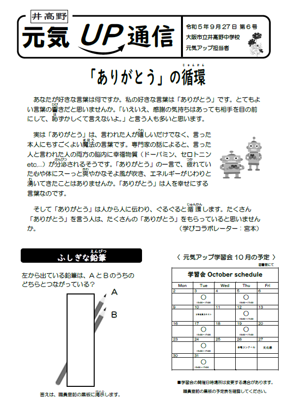 本日『井高野元気UP通信 第6号』を配布いたしました。