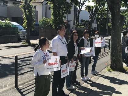 今朝は、『みまもるデー』ということで、PTA役員・実行委員の皆さんが、正門前で登校してくる生徒にあいさつを呼びかけていただきました。